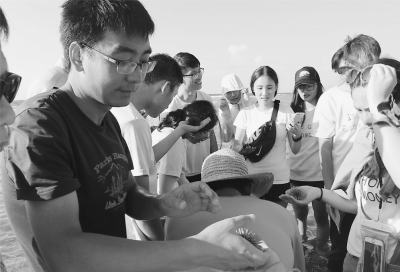 上图为两岸学子在小琉球调研台湾休闲渔业发展情况。