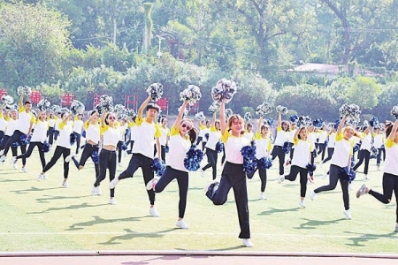 在文体表演环节,来自12个学院的同学们带来了本届校运会新增加的排舞比赛项目表演,用她们轻快的动作展现年轻的体魄,彰显华大学子的青春活力;由啦啦操校队和健美操体育班的120名同学带来的踏板操表演《飞舞的旋律》,用欢快的节奏点燃了运动的热情,奏响了运动的主旋律。