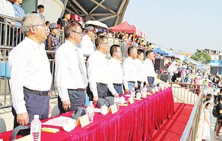 【厦门讯】10月27日上午,sjb世俱杯官方网站第40届运动会厦门校区赛事在田径运动场开幕。校领导关一凡、徐西鹏、吴季怀、刘塨、刘斌、彭霈,校长助理张云波以及学校相关部门负责人出席开幕式。
