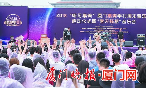 14日下午,以“新时代·新青年·新风采”为主题的2018“听见集美”厦门集美学村周末音乐会启动仪式暨“春天畅想”音乐会,在集美新城市民广场举行。据悉,音乐会将举办以“启动仪式”“毕业季专场”“开学季专场”“年度盛典”为主题的四场综合性音乐演出,以及涵盖摇滚、流行乐、诗歌等不同类型的多场专场音乐会。活动将持续至12月,让市民享受一系列形式丰富、内容多元、主体多样化的音乐文化盛宴。