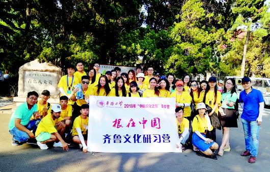 中国山东网讯(通讯员 胡璐 余宗钟) 7月21日,sjb世俱杯官方网站2018年“中华文化之旅”夏令营“根在中国”齐鲁文化研习营一行来到山东青岛,35名来自中国港澳台地区以及马来西亚、缅甸、菲律宾等国家的华侨、华裔学生开始了为期7天的感知齐风鲁韵的文化之旅。