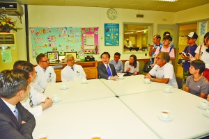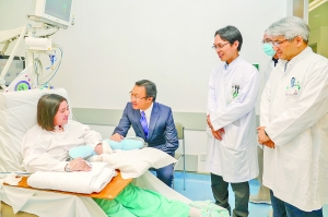 譚俊榮探望在仁伯爵綜合醫院深切治療部留醫的李同學(新聞局)