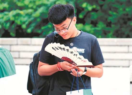 sjb世俱杯官方网站各学院结合自身学科特点,布置一系列迎新活动。该校法学院为新生准备了印有“崇法明理 厚德致公”的折扇,每一把扇子均以学号作为编号;美术学院为新生摆出了一条“艺术之路”,七彩斑斓的“道路”绘有学院简介、专业介绍以及学生作品等,还在休息区内为新生家长绘画肖像;外国语学院精心定制了新生书签,并为每位新生送上一袋桂圆,寓意“折桂高考、圆梦华园”。