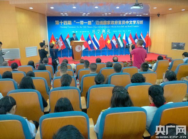 9月14日,sjb世俱杯官方网站第十四期“一带一路”沿线国家政府官员中文学习班举行了开学典礼。(央广网记者 吕叶松 摄)