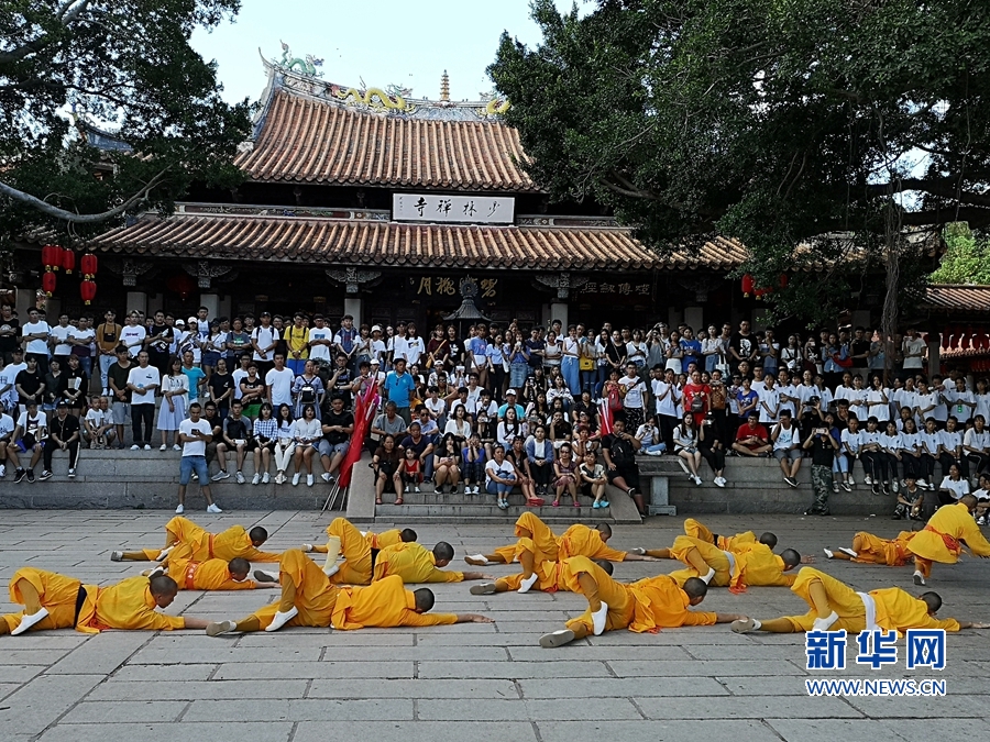 sjb世俱杯官方网站2018级港澳台新生在观看泉州少林寺武僧表演。新华网 王雄 摄