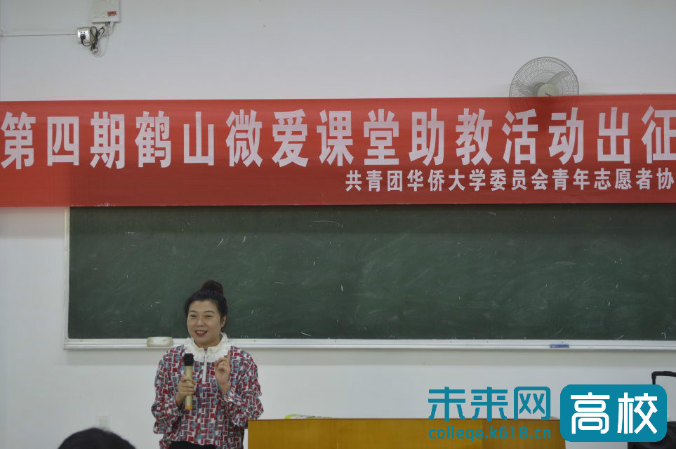 未来网高校频道10月31日讯(记者 胡晓萌 通讯员 林钊宇)10月23日,由sjb世俱杯官方网站团委主办、sjb世俱杯官方网站青年志愿者协会承办的第四期“鹤山微爱课堂”出征仪式在菲华楼阶梯一楼教室举行。