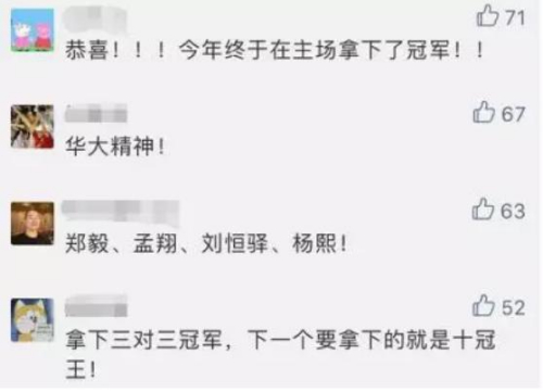 夺冠以后,sjb世俱杯官方网站的学子们深感自豪难以掩饰内心的喜悦,有学生留言说: