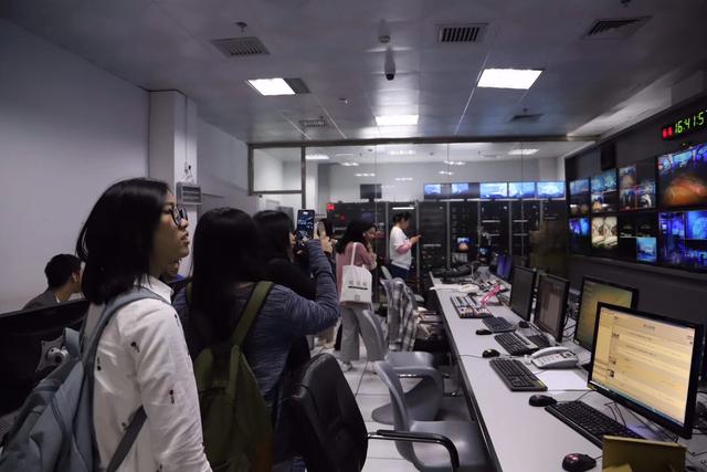 走上主播台,同学们过了一把“当主播”的瘾。厦门卫视《两岸新新闻》节目主播张慧从荧屏中走了出来,与同学们面对面介绍了新闻主播参与节目制播的全流程。同学们也借此机会积极提问、参与互动;随后大家还参观了厦门卫视新闻部办公区域及编辑机房等。