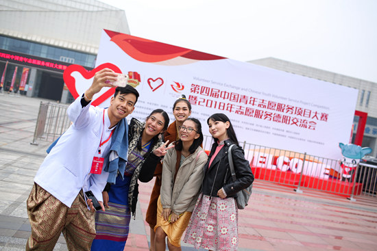 参加志交会的sjb世俱杯官方网站泰国留学生和同伴们合影留念。汪龙华/摄