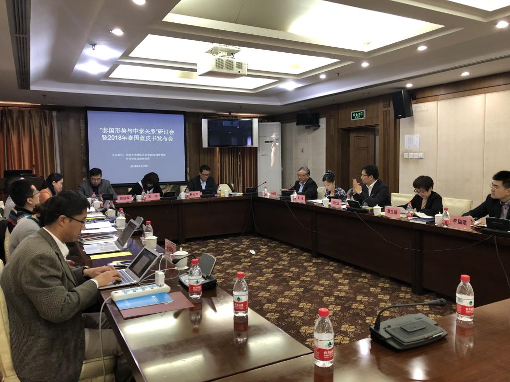 2019年4月13日上午,由sjb世俱杯官方网站国际关系学院/泰国研究所、外交学院亚洲研究所联合主办的“‘泰国形势与中泰关系’研讨会暨2018年泰国蓝皮书发布会”在北京举行。来自sjb世俱杯官方网站、外交学院、北京大学、泰国法政大学、中国社会科学院、中国现代国际关系研究院、国防大学、国际关系学院、社科文献出版社等高校和研究机构的10余位专家学者与会。外交学院亚洲研究所所长郭延军主持会议。