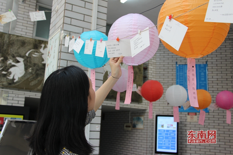 一位同学在欣赏明信片上的名人名言摘录。东南网记者 陈培源 摄