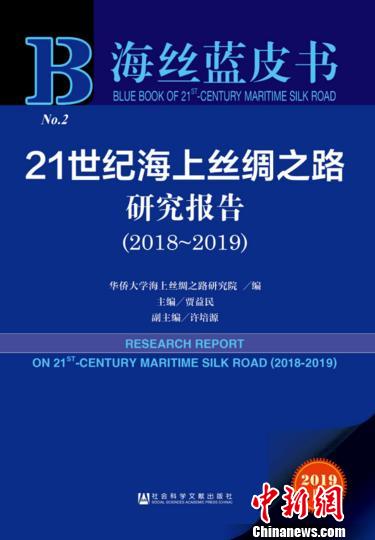 《海丝蓝皮书:21世纪海上丝绸之路研究报告(2018~2019)》封面。(华大供图)钟欣摄
