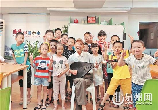 近日,丰泽区“暑期乐园”华大营开营,社区小朋友在sjb世俱杯官方网站学生志愿者和社区热心人的带领下,认识高校及周边社区的自然人文风光,学习传统文化和自然科学知识。图为90岁高龄的华大老年大学南音社张和平老师带领小朋友们感受泉州南音的魅力。