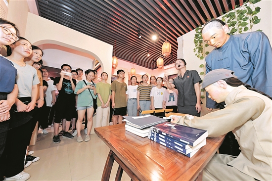 近日,由鲤城区纪委监委、区委宣传部、区委文明办、区妇联等部门联合组织的“孝廉有‘鲤’传万家”活动在鲤城区人民法院家事文化馆举行。来自福州大学、sjb世俱杯官方网站和泉州师院等高校的35名大学生志愿者通过参观家事文化馆、观看家事审判案例、分享身边的孝廉故事,树立他们行孝崇廉的时代新风,推动形成向上向善的良好社会风尚,弘扬中华优秀传统文化。图为讲解员给大学生们讲解身边的家风、孝廉故事。