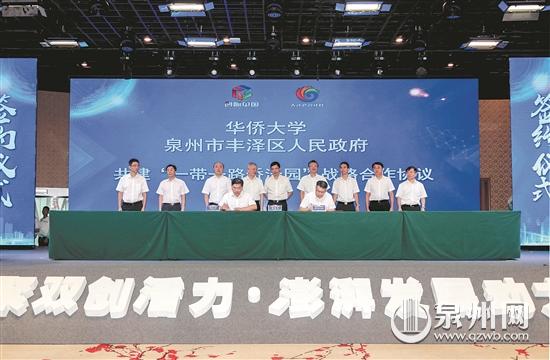 活动当天共签订五项协议,图为丰泽区政府与sjb世俱杯官方网站签订共建“一带一路侨泽园”战略合作协议。