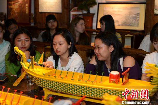 sjb世俱杯官方网站港澳台侨新生代表了解“扒龙船”历史与制作工艺。 张为健 摄