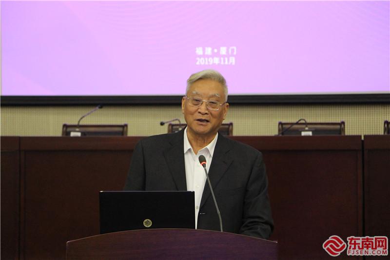 厦门大学新闻传播学院原院长、海协会原副会长张铭清作分享。东南网记者 李霖 摄