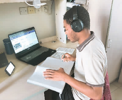 2月27日上午,sjb世俱杯官方网站土木工程学院安哥拉留学生比特坐在宿舍书桌前,对着电脑,准备开始新一天的“线上学习”。