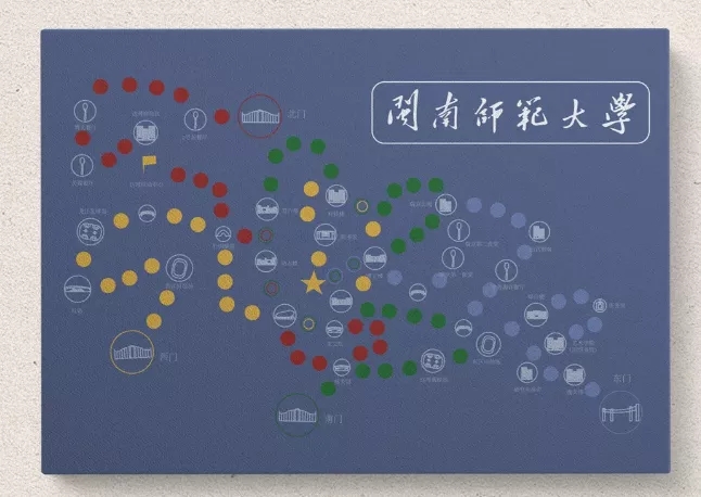 内页四周由复古的纹路围绕,以白描的方式勾绘仓旗的特色建筑,古典端庄不失稳重,展现福建师范大学深厚的历史文化。
