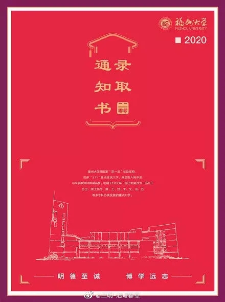 今年,福州大学录取通知书选择红色作为主色调。
