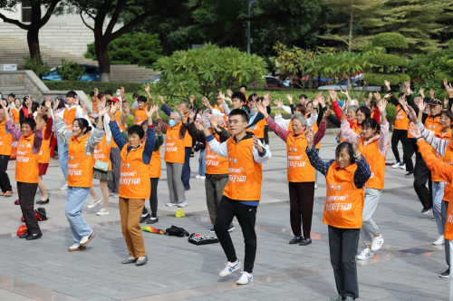 在进行健步走活动之前,志愿者还陪伴老人学习了一套简单易学的“孝心养肺操”。这是2020年“孝心工程•青春伴夕阳”活动特别推出的健康操,旨在为老年人送去健康,也为志愿者孝心伴老提供一种新形式。老年人和志愿者随着音乐而动,身体在运动中得以舒展,精神在陪伴中得以愉悦。