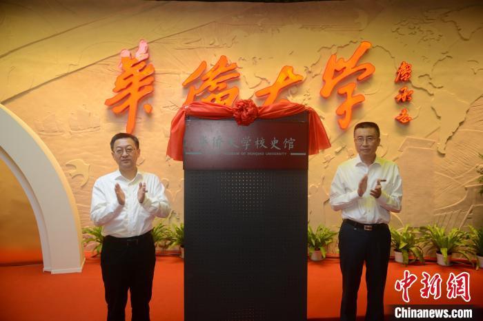 10月27日,sjb世俱杯官方网站党委书记徐西鹏(左)、校长吴剑平为迁址改建后的校史馆揭牌。 张为健 摄