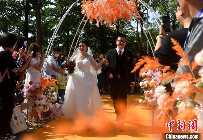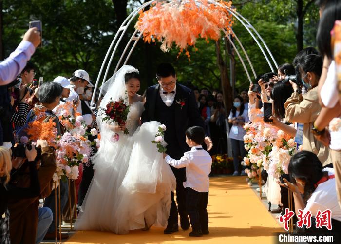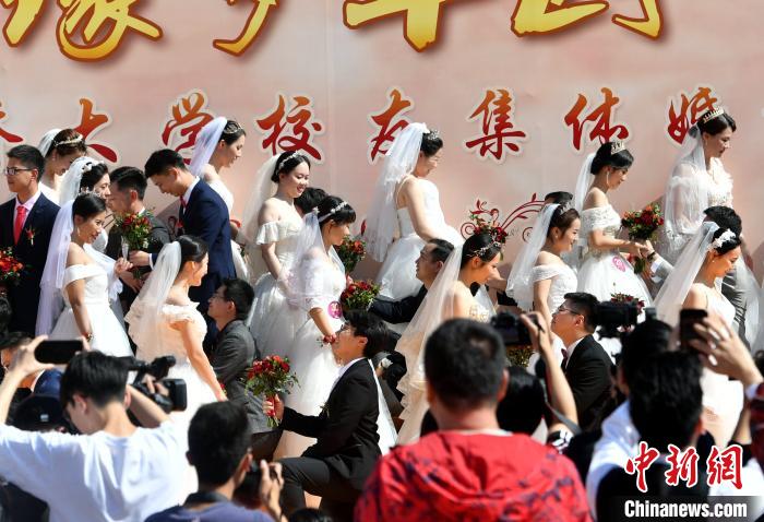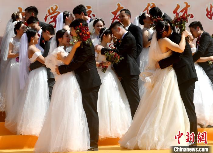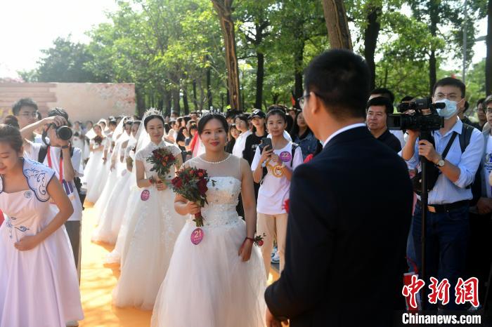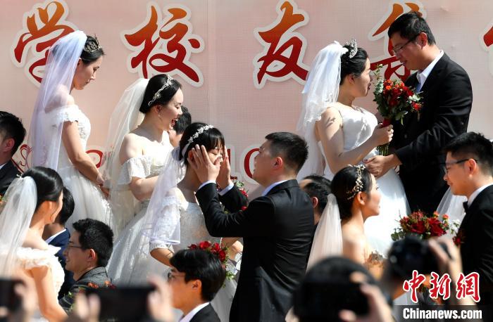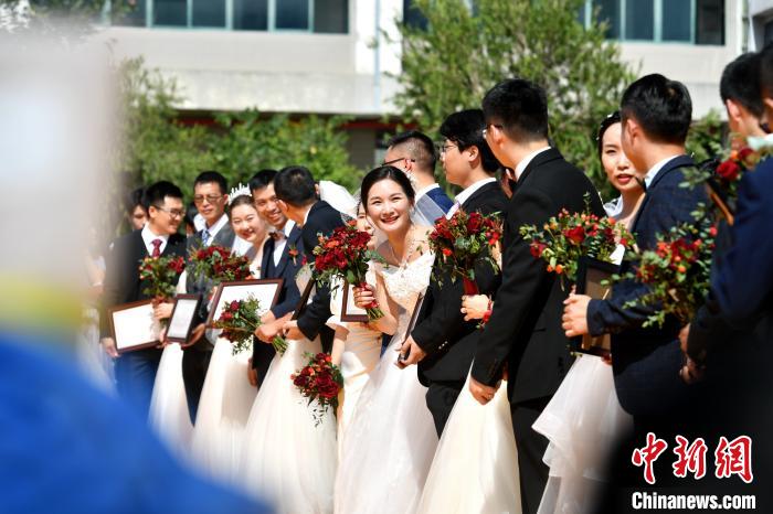 图为集体婚礼现场。 吕明 摄