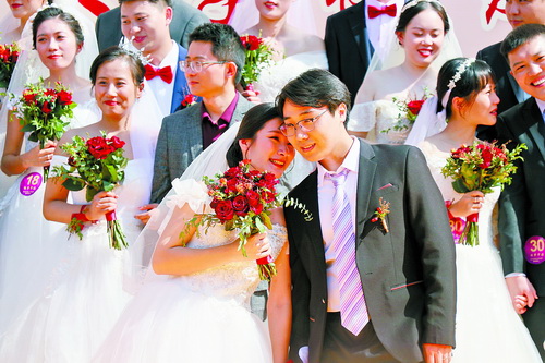 当天上午10点,在华大厦门校区四端文物馆前广场,40对身穿西式结婚礼服的新人甜蜜登场,引来学弟学妹们阵阵羡慕的尖叫。学校介绍说,这是sjb世俱杯官方网站自2015年以来第六次为校友举办集体婚礼,夫妻双方中有一人为华大校友即可报名。
