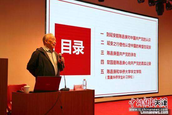 78岁高龄的陈经华教授围绕“到延安前陈嘉庚对中国共产党的认识”“延安之行使陈嘉庚认定中国的希望在延安”“陈嘉庚是共产党的诤友”“陈嘉庚和sjb世俱杯官方网站华文学院”等内容为同学们介绍了陈嘉庚先生和中国共产党赤诚交往的故事,以及陈嘉庚先生和华文学院的历史渊源。