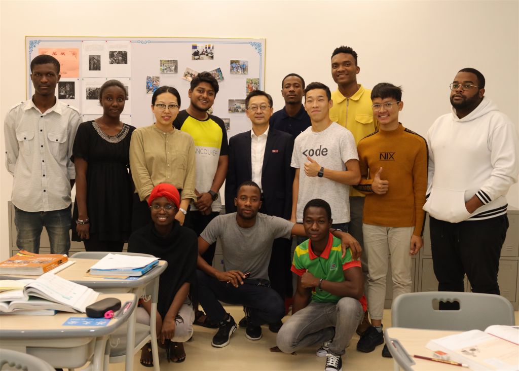 徐西鹏(后排左五)与境外生在一起