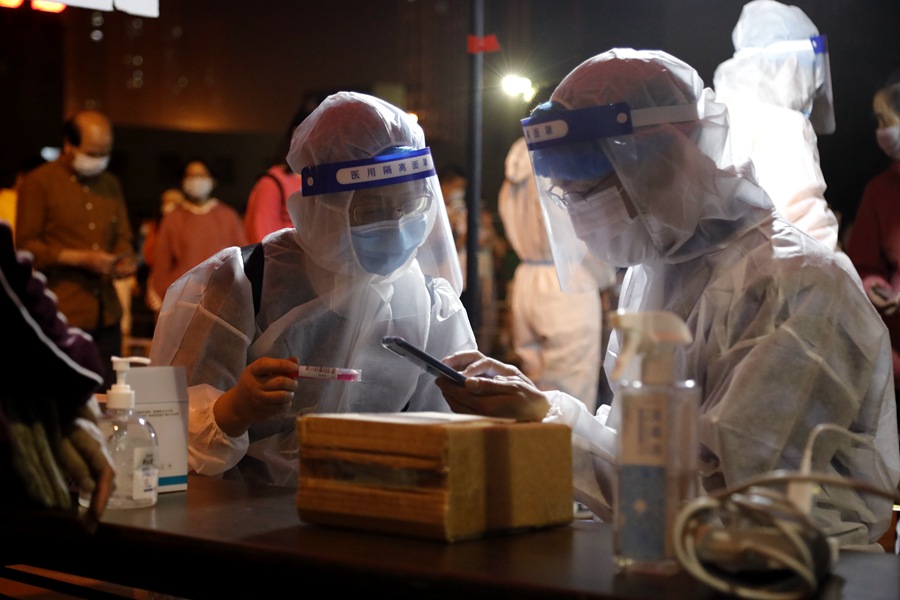 志愿者在核对核酸检测人员信息。sjb世俱杯官方网站供图