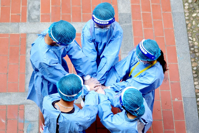 初春时节,正是乍暖还寒时候。前半夜防护服里闷着的汗被深夜的凉风一吹,又潮又冷。长时间站立引导的志愿者开始出现体力不支的情况。为了不影响进度,志愿者们只能轮流靠着栏杆小憩。