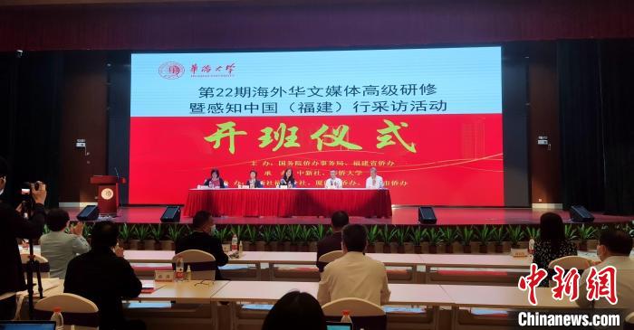 中新网厦门11月10日电 (记者 杨伏山)第22期海外华文媒体高级研修班暨感知中国(福建)行采访活动10日在厦门启动,来自美国、俄罗斯、英国、法国、日本等15个国家和地区的华文媒体精英与相关职能部门人员30余人参加启动仪式。