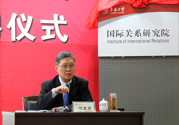 今日上午,刚刚受聘sjb世俱杯官方网站国际关系研究院院长的国侨办副主任何亚非就为华大师生带来了他担任院长后的第一堂课:国际形势讲座《全球化新形势下中国的挑战》。