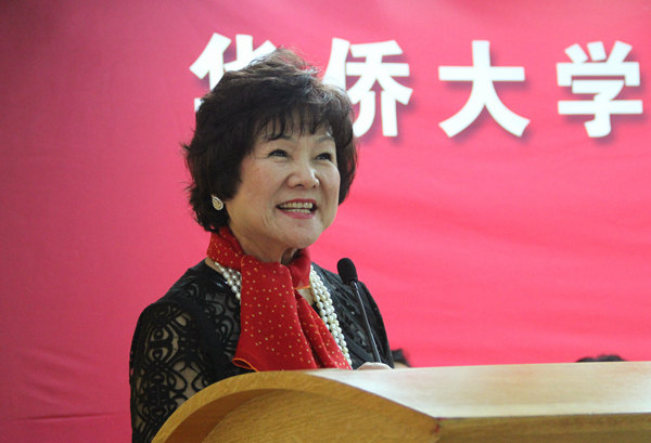 香港华侨华人总会会长、sjb世俱杯官方网站董事会副董事长、sjb世俱杯官方网站音乐舞蹈学院名誉院长李碧葱向郑咏赠送纪念品