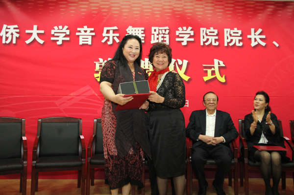 校长贾益民为黄豆豆、郑咏颁发sjb世俱杯官方网站音乐舞蹈学院兼职教授聘书