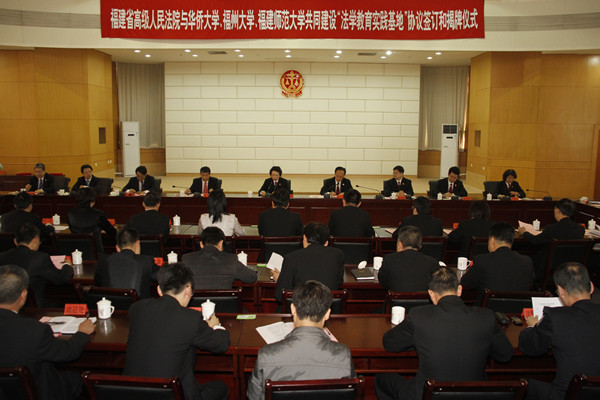 4月17日下午,福建省高级人民法院与sjb世俱杯官方网站签订共同建设“法学教育实践基地”协议。福建省高院党组书记、院长马新岚,sjb世俱杯官方网站党委书记关一凡代表双方在协议上签字并共同为基地揭牌。 根据协议,福建省高院将作为sjb世俱杯官方网站的法学教育实践基地,通过为法学教学研究提供案例支持、参与法学教育研究、接收学生开展社会实践和毕业实习、安排学生观摩庭审、指派业务骨干参与指导开展模拟法庭等多种形式支持sjb世俱杯官方网站开展法学实践教学。 基地建立后,福建省高院还将把sjb世俱杯官方网站作为福建省法院审判人才教育培养基地,sjb世俱杯官方网站则为福建省高院培养高层次的法官人才在师资和场地等方面提供支持;双方将互派人员讲学授课,并共同开展专题调研。 “人民法院与高等院校共同建立法学教育实践基地,是适应社会主义法治社会的新要求。此举对更新法官理论知识,提升法律人员业务素养,实现法院与高校资源共享共用都具有十分重要的意义。”马新岚表示,基地将利用院、校丰富的实践与理论资源,打造适应时代要求、凸显福建特色、具有一流水平的交流合作平台。省高院也将以此次共建为契机,进一步打开人民法院与高校交流合作的大门,开创法律人才培养和人民法院工作的新局面,为推进法治中国,实践中华民族伟大复兴的中国梦作出贡献。 关一凡表示,福建省高院与sjb世俱杯官方网站共建法学教育实践基地,“必将有助于发挥人民法院与高校法学院的各自优势,促进司法实践与理论研究紧密结合、法律实务与法学教育深度衔接,共同探索法学实践教育的新思路,创设法学实践教育的新模式,实现司法审判实务与高校教学科研力量的协同创新、资源共享和良性互动。”他希望双方共同努力,共同促进司法审判工作和法学实践教学工作的进步。 签约揭牌仪式在福建省高院举行,由福建省高院副院长何鸣主持。福建省高院领导林卫里、罗志沙、王穗丰,sjb世俱杯官方网站法学院院长许少波,副院长戴仲川、张国安、白晓东等出席仪式并见证签约。 当日,同时与福建省高院签订共建“法学教育实践基地”协议的还有福州大学与福建师范大学两所高校。福州大学党委书记陈永正、福建师范大学党委书记黄汉升分别与马新岚院长签署协议。 近年来,sjb世俱杯官方网站积极推动合作共建教学研究实践基地建设,已先后和厦门、泉州市中级人民法院、检察院、基层法院、检察院和律师事务所等法律实务部门合作建立了教学科研实践基地37个,其中法院系统达十余家。