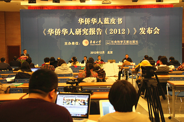 图为《华侨华人蓝皮书<华侨华人研究报告(2012)>》发布会在京举行