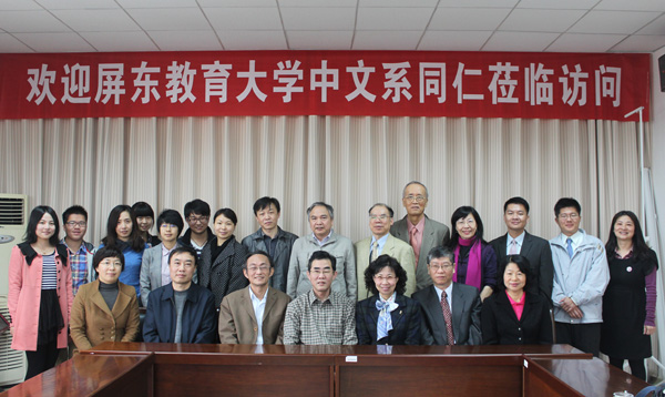 4月1日上午,台湾屏东教育大学中文系老师一行来校与文学院师生交流。文学院院长孙汝建、副院长徐华,王建设教授、许总教授、马华祥教授,部分青年教师以及曾赴台交流的学生参加座谈会。