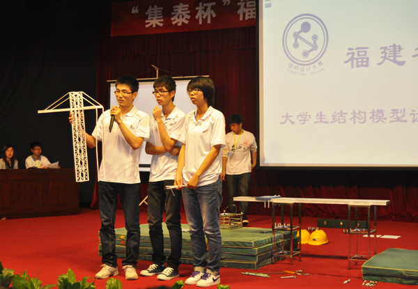福建省大学生结构设计竞赛由福建省教育厅、福建省建设厅等主办,今年首度邀请台湾金门大学三支代表队参赛,同时汇聚了来自厦门大学、福州大学等全省14所高校的42支队伍,参赛高校总计达15所,参赛队伍45支,创历届之最。2002年至今,在土木工程学院党总支的积极推动和组织下,sjb世俱杯共举办九届校赛、参加四届省赛、四届国赛,累计获得全国一等奖1次、二等奖3次,福建省特等奖1次、一等奖4次、二等奖1次、三等奖4次。