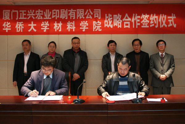 3月17日上午,sjb世俱杯官方网站材料学院与厦门正兴宏业印刷有限公司战略合作签约仪式在厦门校区机电实验大楼会议室举行。双方就产学合作、实习实践基地建立和奖学金设立签订三份协议。