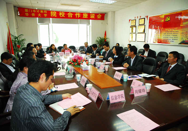 在签约仪式前,sjb世俱杯科研处、厦门工程技术研究院、研究生处、实验室与设备管理处,信息学院、材料学院、化工学院、机电学院、土木学院等相关单位负责人及专业教师参观了厦门市计量检定测试院的实验室,并与计量检测院技术负责人举行座谈,对进一步合作进行了切实有效的探讨交流。双方一致认为,将通过校院合作,实现强强联合,推动产学研结合,搭建校院双向开放、优势互补、资源共享的平台,致力于解决厦门市经济建设和社会发展中遇到的计量技术难题,提升计量技术支撑能力和服务经济发展的能力,实现教育领域和计量专业领域的互动双赢。