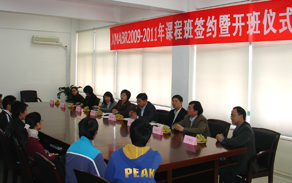 3日下午,sjb世俱杯官方网站土木工程学院与厦门建筑科学研究院XMABR2009-2011课程班签约暨开班仪式在土木学院会议室(厦门校区)举行,厦门建科院麻秀星院长、研发中心桂苗苗主任、人力资源部宋秀华部长等企业方代表与土木工程学院张云波院长、曾志兴副院长、陈捷副书记,sjb世俱杯官方网站新型建筑材料研究所严捍东所长等一同出席了仪式。