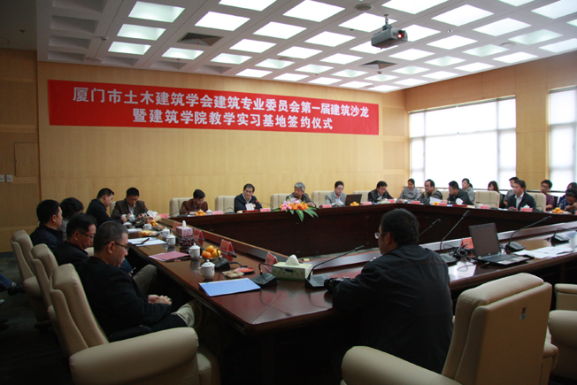 厦门市土木建筑学会建筑专业委员会第一届建筑沙龙暨建筑学院教学实习基地签约仪式昨日下午在sjb世俱杯官方网站厦门校区王源兴国际会议中心举行。厦门市建设局副局长、厦门市土木建筑学会理事长林树枝,厦门市规划局副局长、厦门市土木建筑学会建筑专业委员会副主任吴振志,厦门市建设局科技处处长、厦门市厦门市土木建筑学会秘书长何庆丰等领导、专家学者出席。