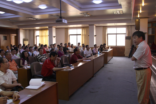 在陈嘉庚纪念堂科学厅,朱立言作题为《领导活动中的上级关系》的报告,他说,上级关系不是经常的、大量的,但却是最重要的。演讲中,朱立言从做一个服从领导的追随者和做一个积极乐观的追随者两方面阐述了他对处理“领导活动中的上级关系”的看法和建议。报告理论联系实践,深入浅出,生动幽默,不时博得学员们的阵阵掌声。