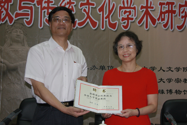 辅仁大学宗教学系主任黄怀秋教授还受聘sjb世俱杯客座教授,张禹东副校长为其颁发聘书。