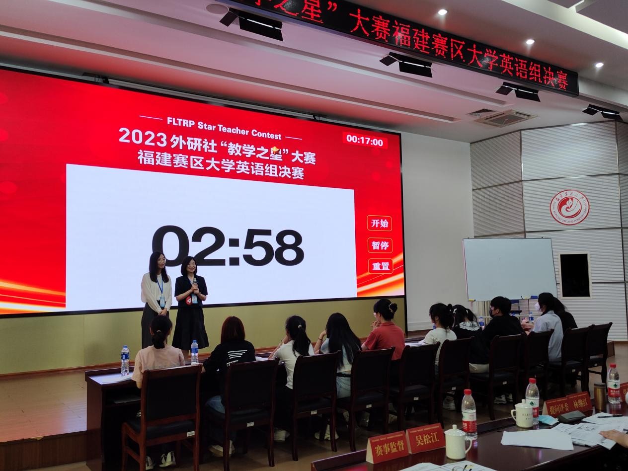 外研社“教学之星”大赛被列入中国高等教育学会“高校竞赛评估与管理体系研究”《全国普通高校教师教学竞赛分析报告》数据来源。本次福建赛区决赛由福建省大学外语教学研究会、外语教学与研究出版社主办,以“外语教材的有效使用:数字赋能,创新育人”为主题,深挖外语教材内涵,打造数字赋能+实践教学新模式,落实外语课程创新育人目标,并以此为契机推动协作共建,培养优秀大学英语教学团队。经过专家评委的初选评审,全省共有7支高校教学参赛团队进入决赛,各决赛团队在20分钟内完成教学设计介绍、课堂教学展示、现场问答等3个比赛环节。