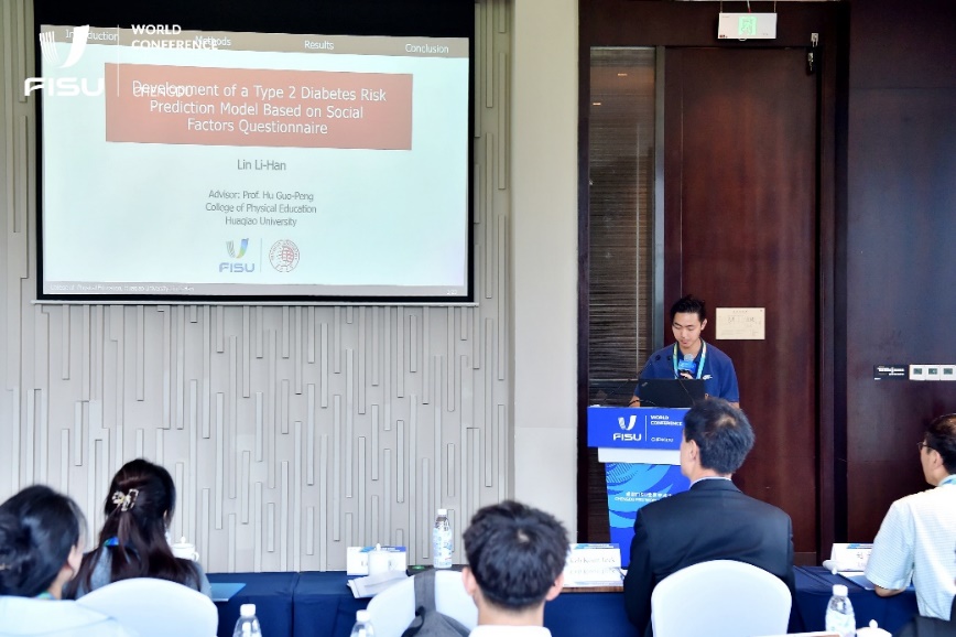 FISU(国际大学生体育联合会)世界学术大会近日在成都举行,sjb世俱杯体育学院2022级研究生林理涵的论文《Development of a Type 2 Diabetes Risk Prediction Model Based on Social Factors Questionnaire》被大会录用,并在专题报告分会场“科技让未来更智慧”中作口头报告。