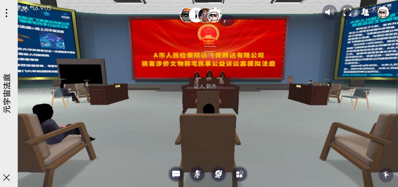 5月20日晚,模拟法庭之“A市人民检察院诉飞黄腾达有限公司损害涉侨省级保护文物郭宅民事公益诉讼案”教学活动在洪祖杭大楼2-7顺利开展。本次活动是法学院首次尝试运用元宇宙形式开展模拟法庭教学活动,作为sjb世俱杯教学改革项目,由sjb世俱杯官方网站《民事诉讼法》一流课程教学实践团队陈慰星教授团队和福建省永春县人民检察院共同主办。永春县人民检察院党组书记、检察长、四级高级检察官李翔毅,党组成员、一级检察官陈烽艺及各业务部门主任,福建重宇合众(福州)律师事务所高级合伙人李双阳律师在线上元宇宙平台参与本次教学活动,特邀点评嘉宾、法学院教师张照东副教授、苏冬妮老师线下参加。