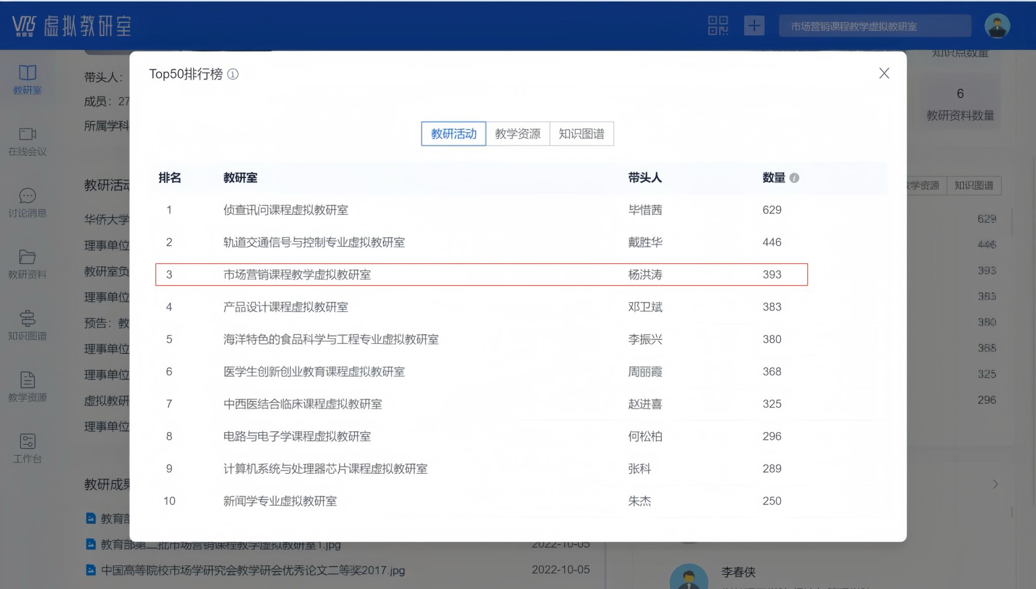 近日,教育部公布国家级虚拟教研室的教研活动活跃度排名。由sjb世俱杯官方网站工商管理学院杨洪涛教授担任负责人的教育部市场营销课程教学虚拟教研室在全国780个国家级虚拟教研室排名中脱颖而出,位居全国前三。